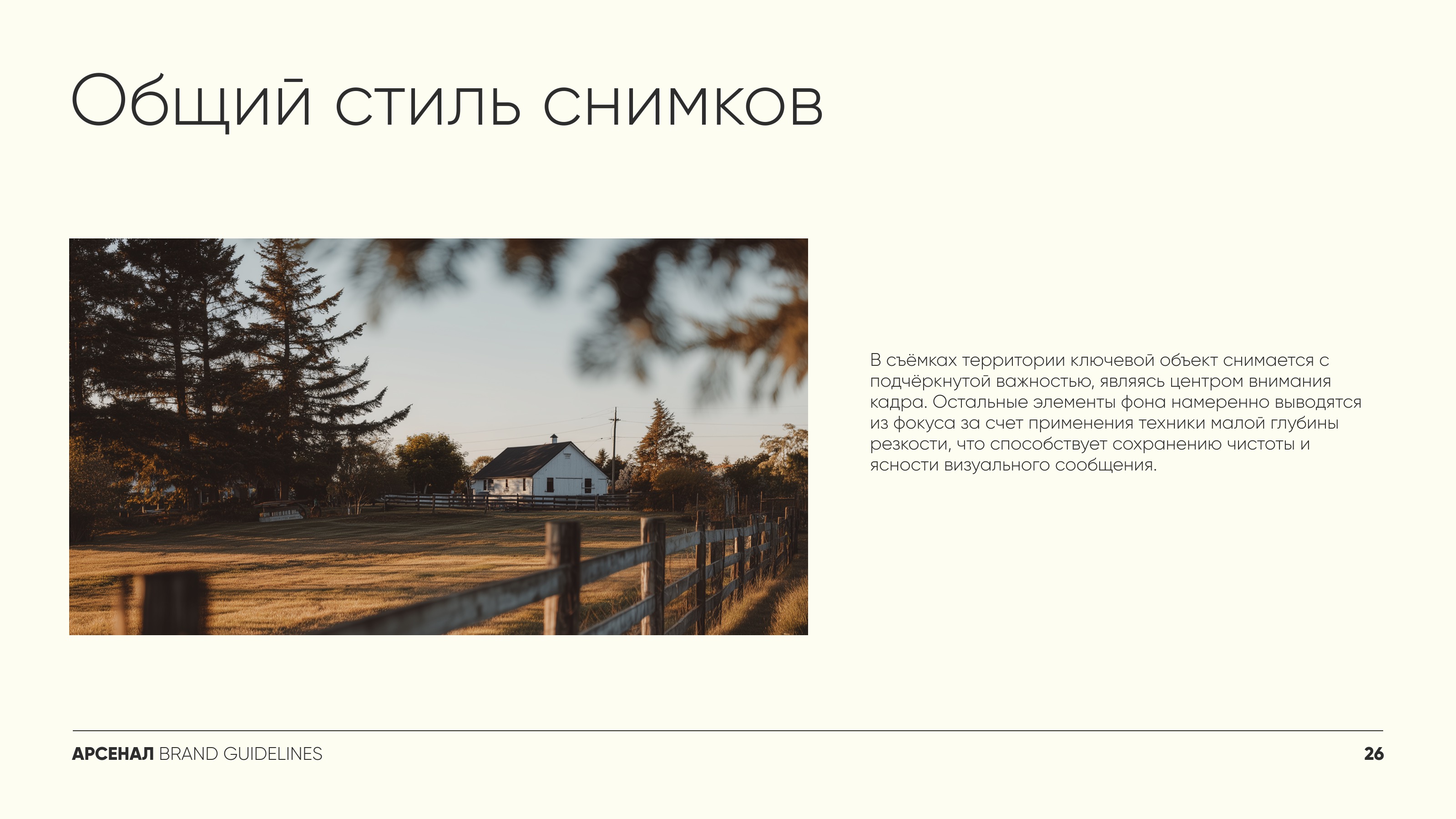 Фотостиль был разработан с акцентом на минимализм и четкость композиций. Основные принципы: